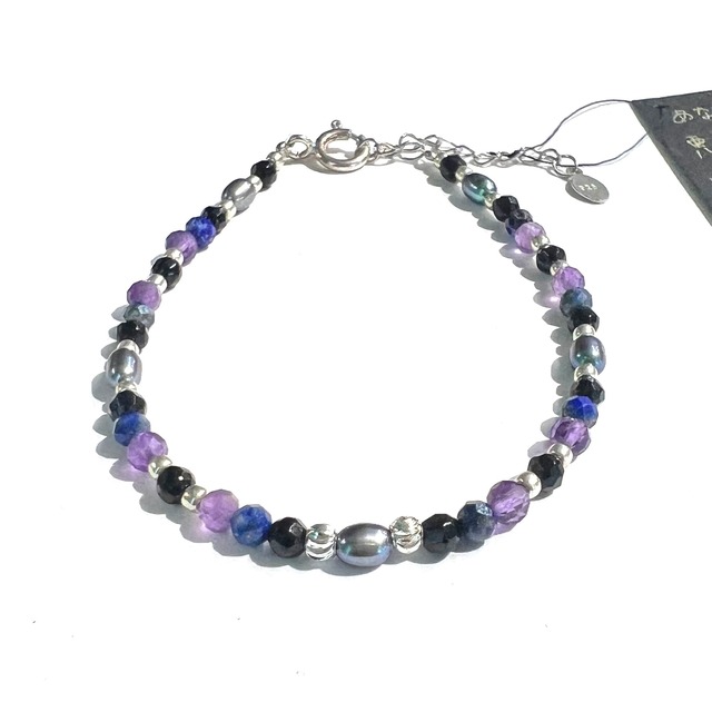♡stone message♡ 人の悪意や嫉妬などのネガティブなエネルギーから身を守ります。他人の悪影響を受けにくくし、外部からの敵意や妨げから身を守り、障害を取り除くお手伝いをします。 使用している天然石 ラブラドライト、ブラックスピネル、ヘマタイト、スモーキークォーツ、淡水パール 金具:silver925/18kgp 長さ:最長20cm(内5cm調節) ※追跡機能付き配送をご希望の場合はレターパックライトをお選びください。
