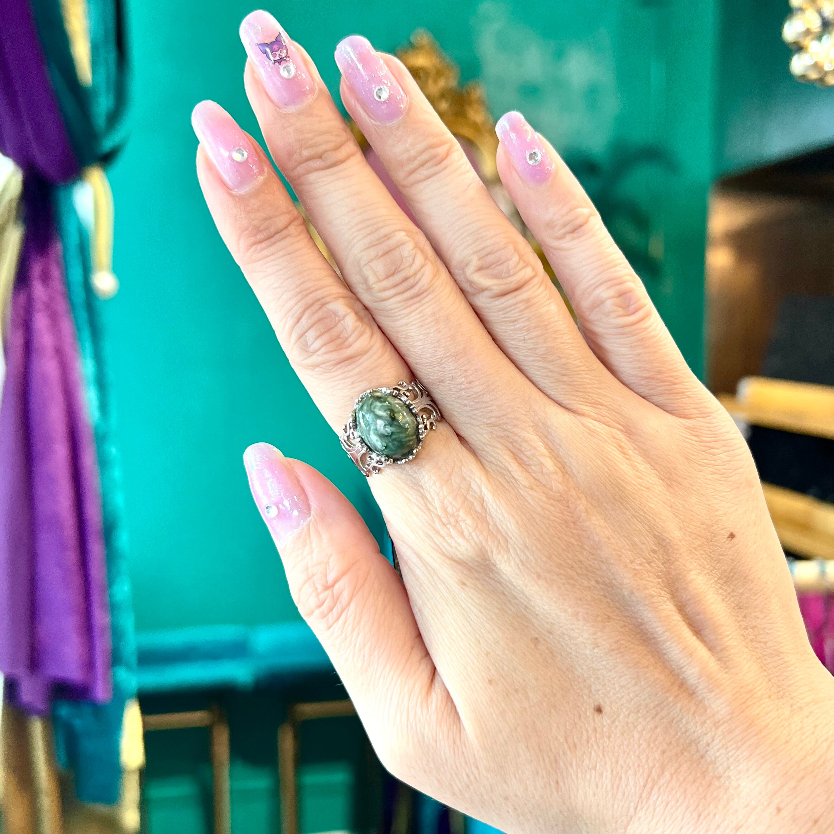 ※リングはフリーサイズとなっておりますが、一気に広げたり縮めたりすると石が外れてしまいますので、石が外れないように抑えながら慎重にサイズ調節を行ってください。