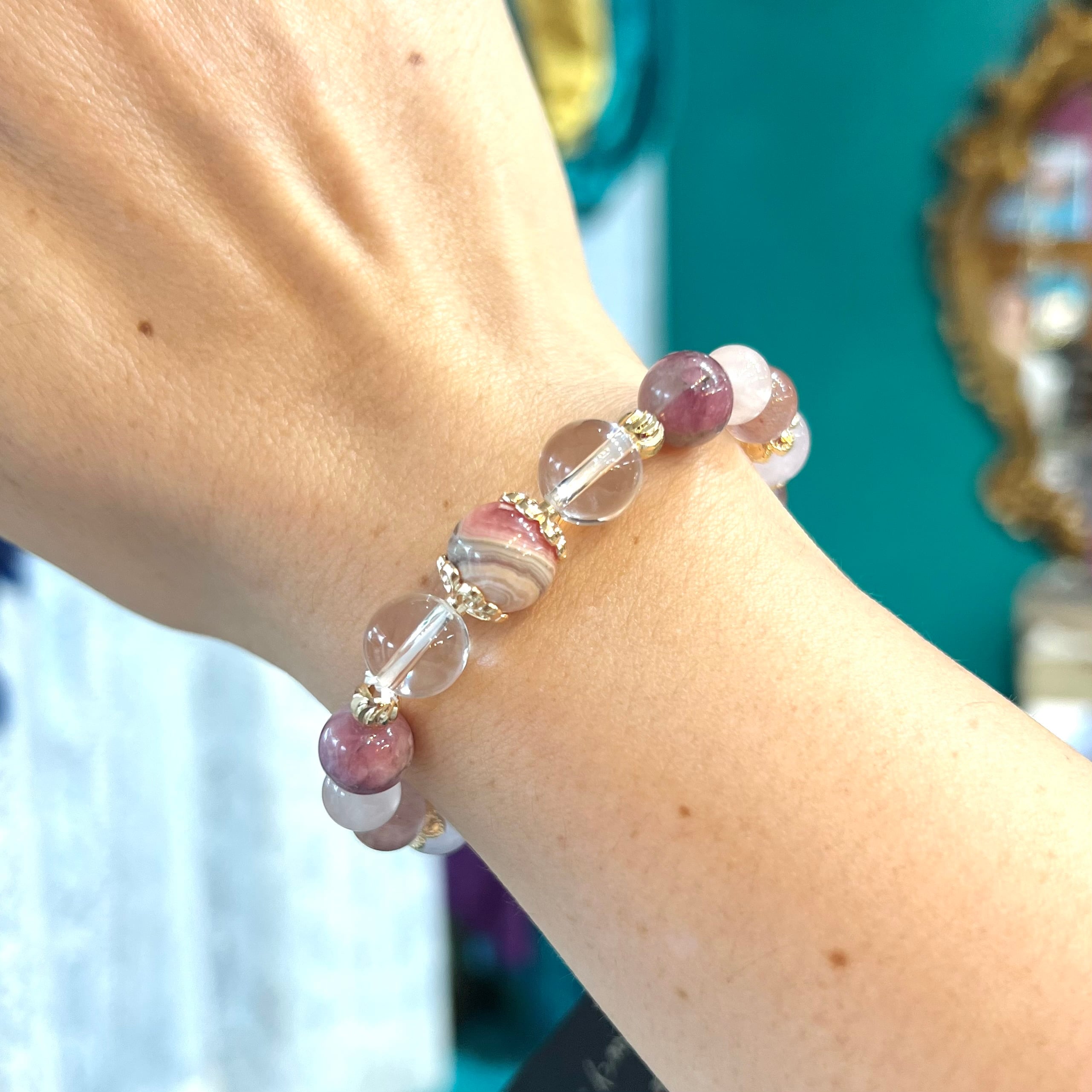 金具を抜いた分はストロベリークォーツかローズクォーツを追加します。