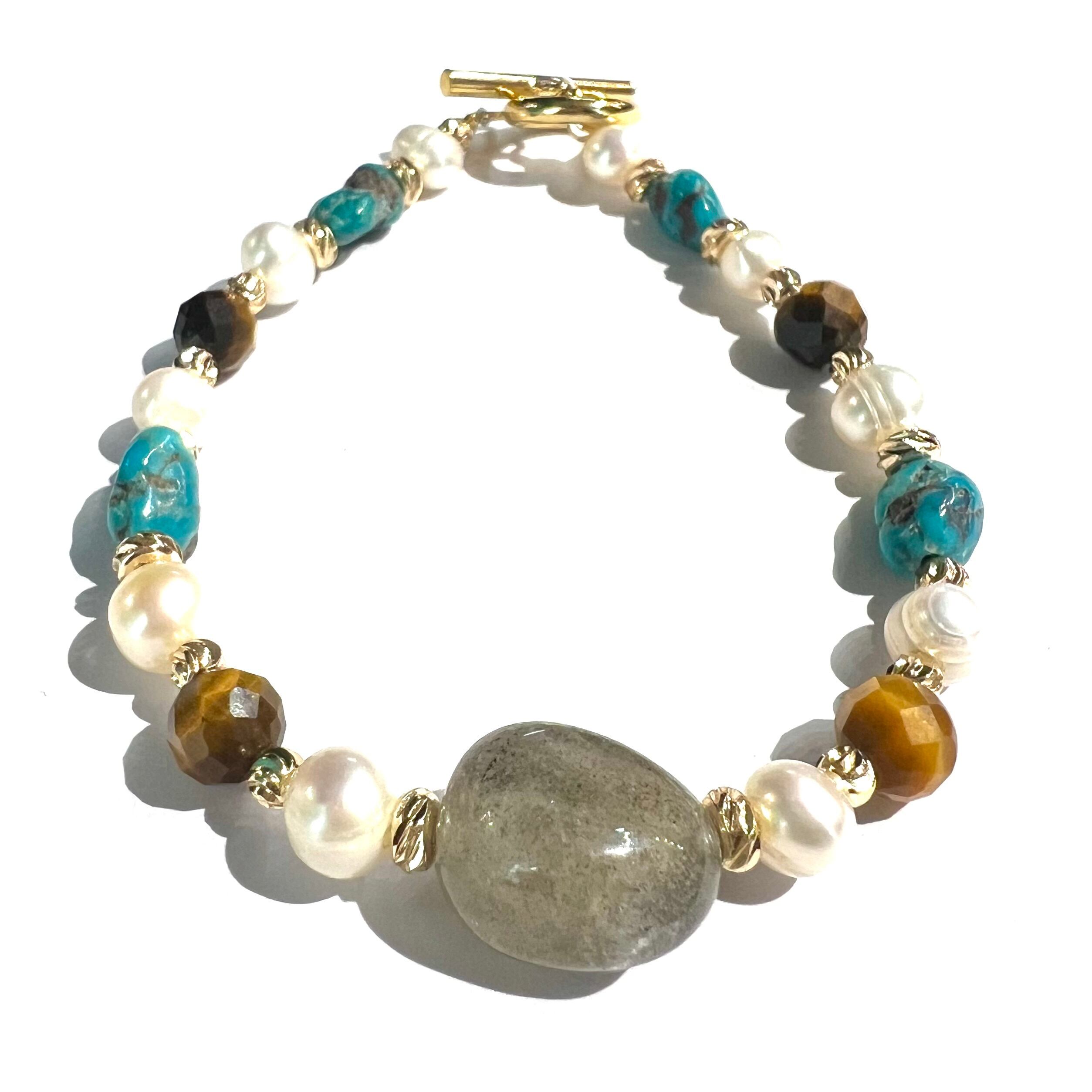 ラブラドライト、ターコイズ、タイガーアイ、淡水パール