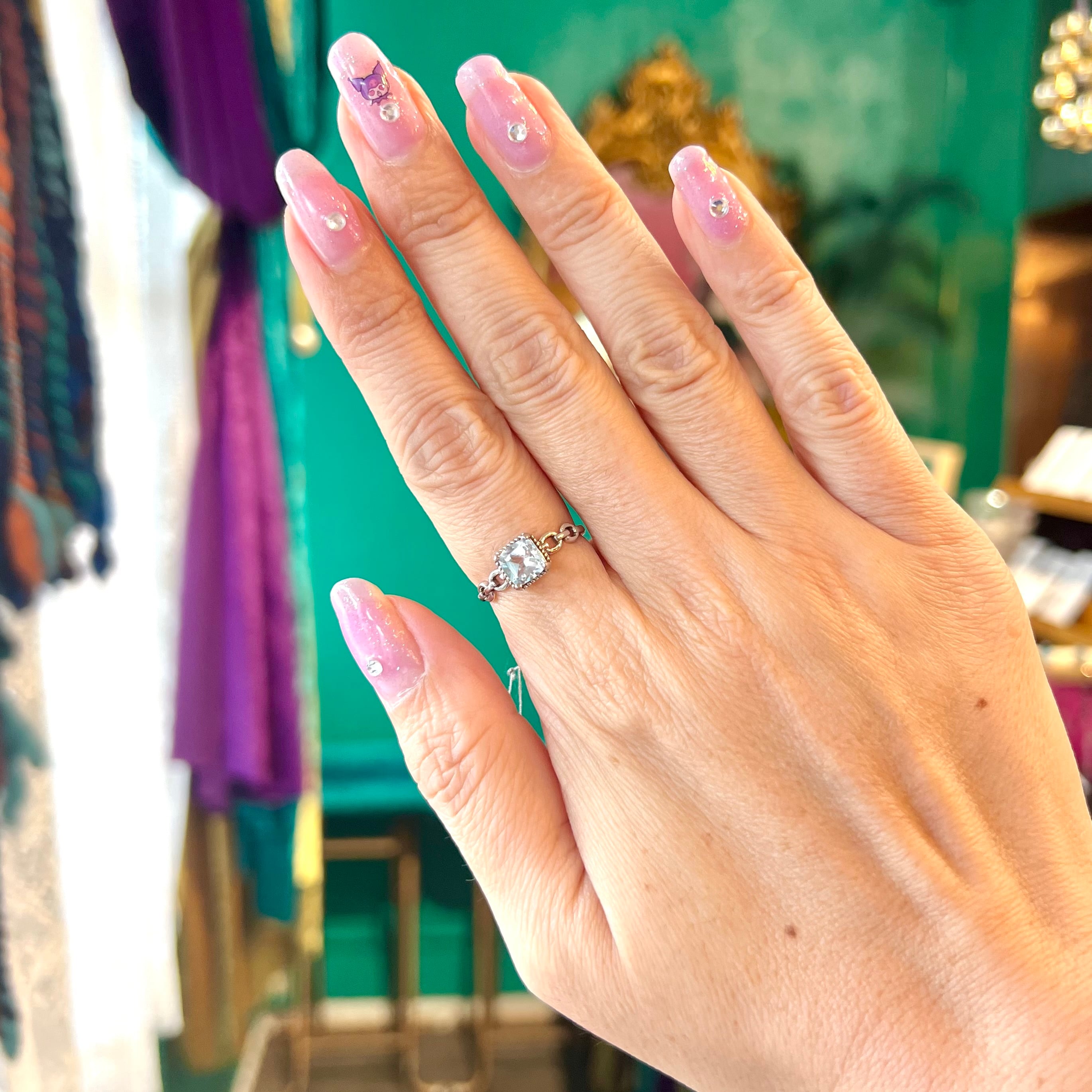 ※リングはフリーサイズとなっておりますが、一気に広げたり縮めたりすると石が外れてしまいますので、石が外れないように抑えながら慎重にサイズ調節を行ってください。
