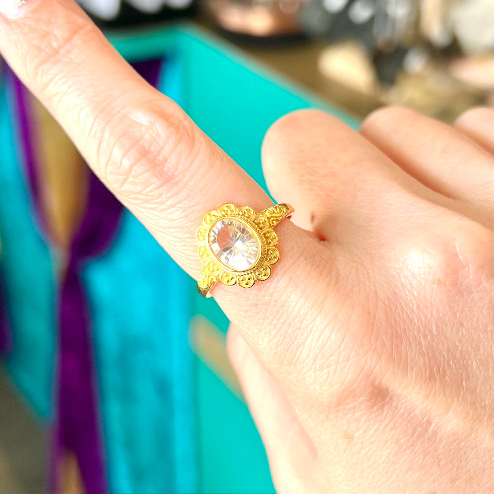 ※リングはフリーサイズとなっておりますが、一気に広げたり縮めたりすると石が外れてしまいますので、石が外れないように抑えながら慎重にサイズ調節を行ってください。