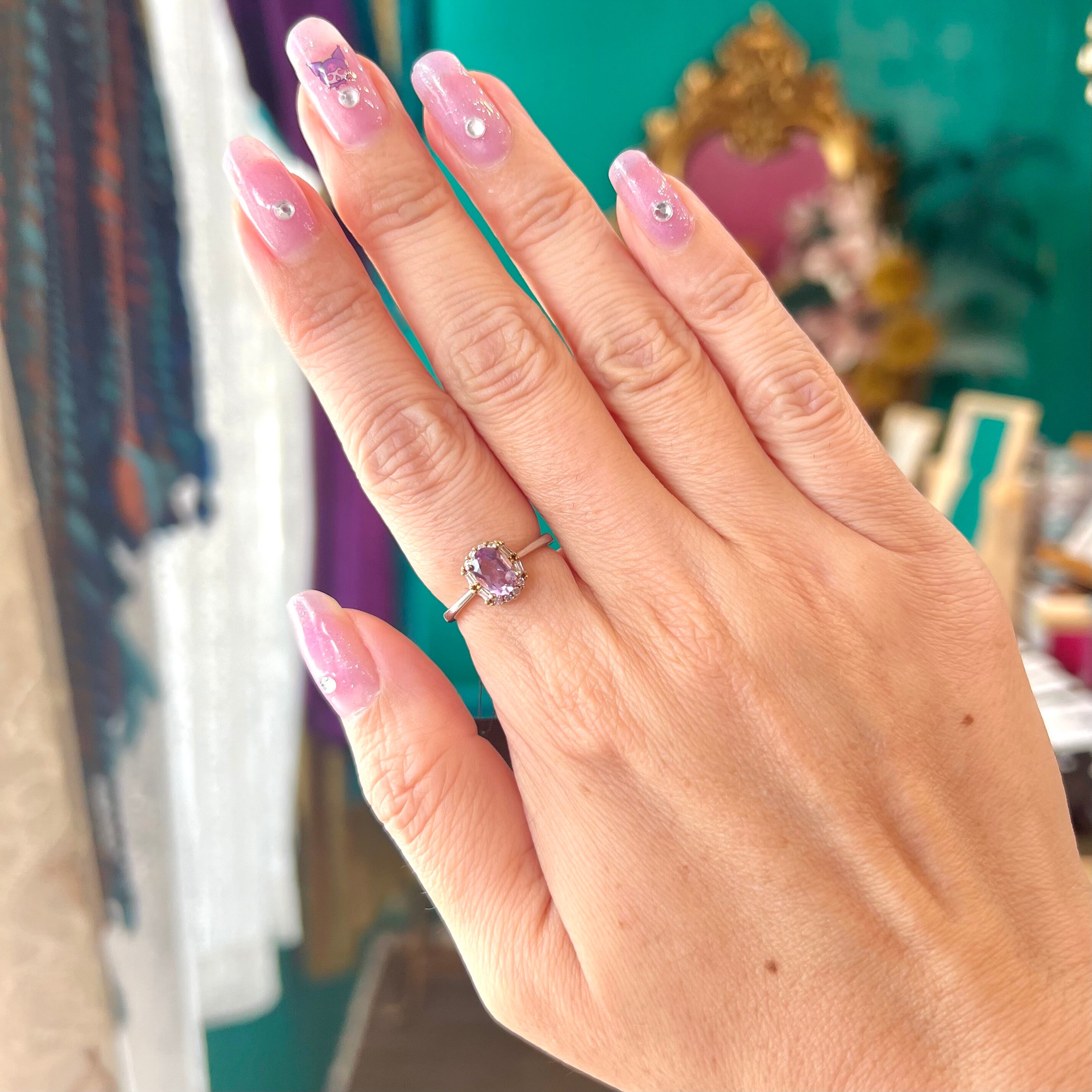 ※リングはフリーサイズとなっておりますが、一気に広げたり縮めたりすると石が外れてしまいますので、石が外れないように抑えながら慎重にサイズ調節を行ってください。